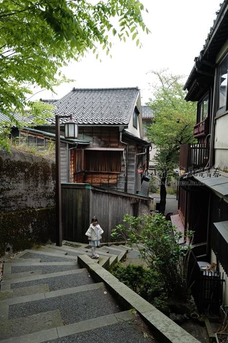 沿著巷弄也可以找到較大的坂道,沿著淺野川林立的老建築,可以想像料理亭的二樓用餐聽著三味琴眺望黃昏的淺野川更有氛圍感。