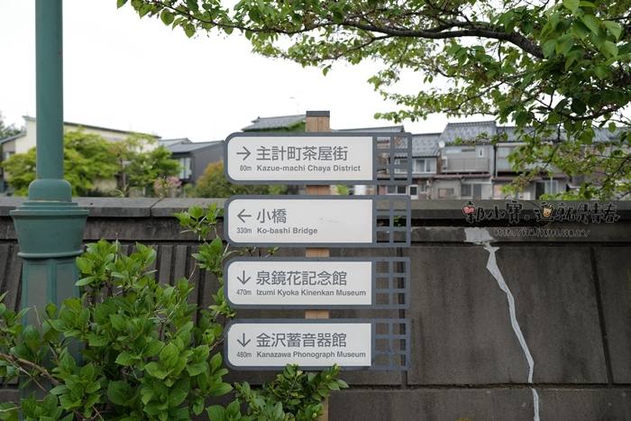主計町相對寧靜許多,沒有吵雜的觀光客談話說,沒有商鋪的叫買聲,可以寧靜的享受這保留著傳統的茶屋街風情,沿路的景色也能細細品嘗金澤的美。