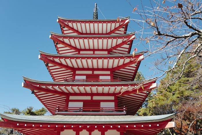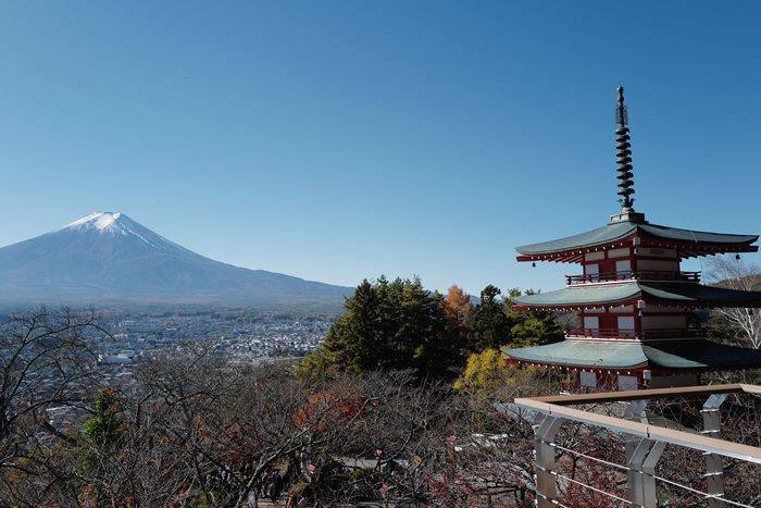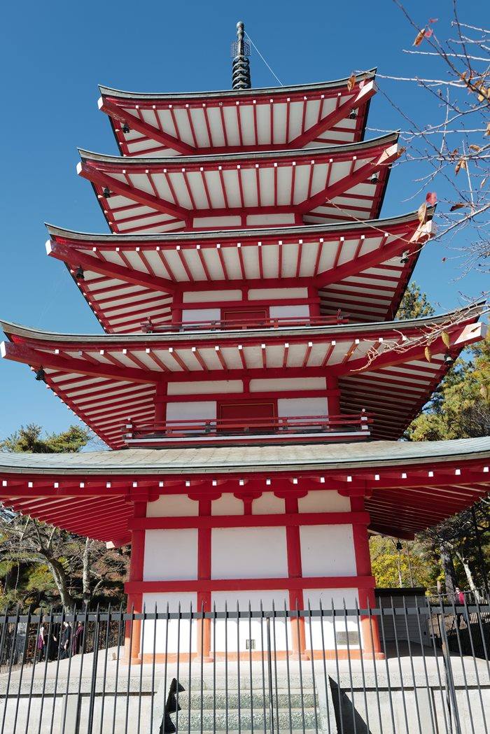 『賞花景點。山梨河口湖』新倉富士淺間神社|讓你一鏡攝入富士山、神社、五重塔、楓葉、櫻花、鳥居、百年林木環繞的必訪景點
