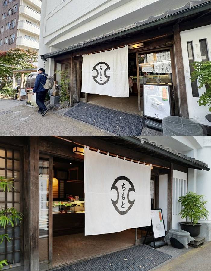 茶屋旁邊三角窗純白建築物就是御菓子司ちもと,算是這特色美食的創始店。