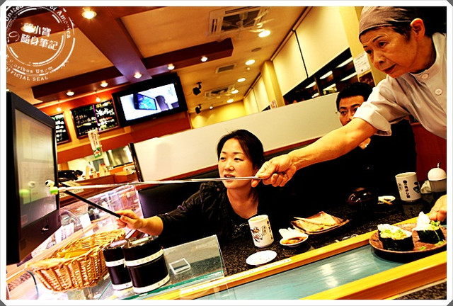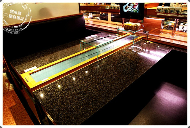 真的很厲害,我們點的食物沿著軌道到我們這一桌的洞口後,就直接轉彎進來了,