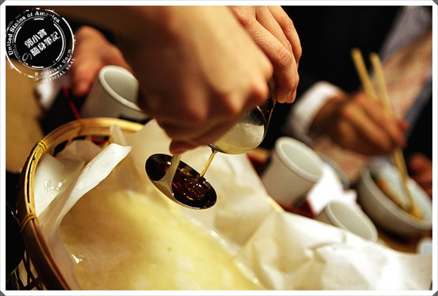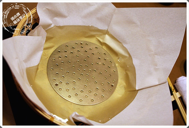 接下來當然就是大家都知道的紙鍋登場了,外面以竹簍子放置,隔著特製的防水紙,中間鐵盤導熱,