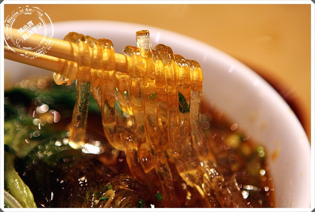 魚肉底下有鋪著類似寬冬粉的食材,入鍋後夾起沾醬,很像在吃涼粉,且口感更Q彈。