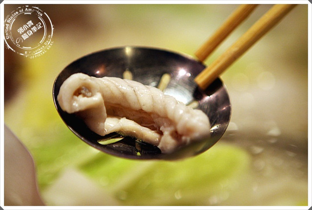 接著將魚肉放置鍋內涮完之後,先以不沾醬的部分入口,只有兩個字形容,美味,
