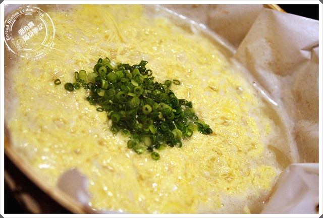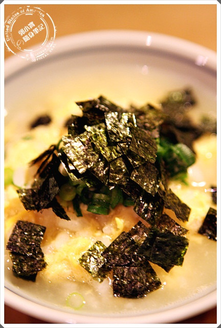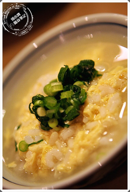 ,他加進去的調味品我就不知道是什麼了,把打好的蛋花圓形環繞均勻得˙灑在雜炊上,看到沒看到沒!!,是不是很漂料啊!! 我也要去買一隻蛋花器,灑的好漂亮唷,加上大量的蔥花,這時候香氣就更讓我受不了了。 |
