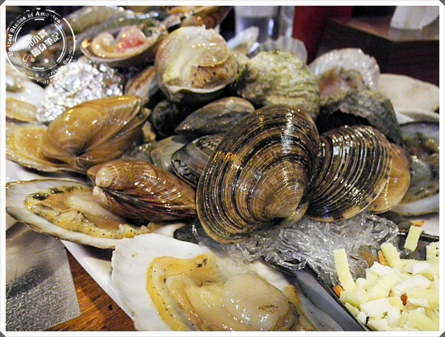 堆到超滿的海鮮食材,連我一個大男生都拿的非常的吃力,上面的貝類真的是眼花撩亂,是貝類大拼盤!!