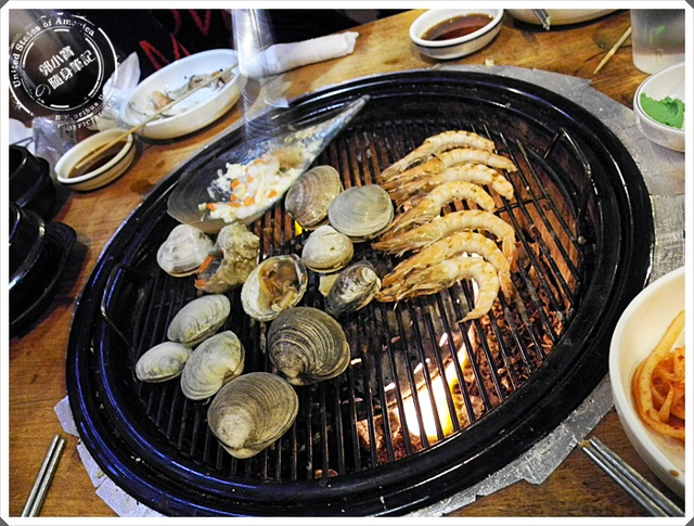 來到第四天晚上逛完弘大藝術商圈後,今天的晚餐就落在小珊找到的海鮮燒烤吃到飽的店,大家都知道的,