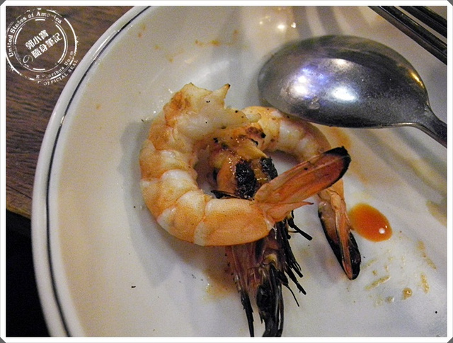 最後由阿仁在上廁所的時候發現它們擺蝦子的位子就在旁邊,就非常自動的拿了兩大盤,