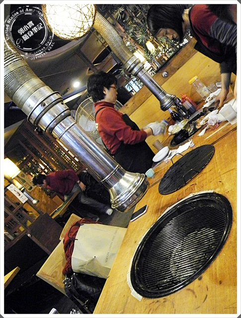 突然發現韓國的餐廳只有燒肉店裡面可以抽菸,因為煙囪都在比大隻的,這間的煙囪還可以自由調整角度 ,