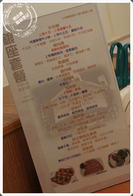 銀座套餐主要可以加點牛舌、頂級松阪豬肉、大草蝦、軟絲等
