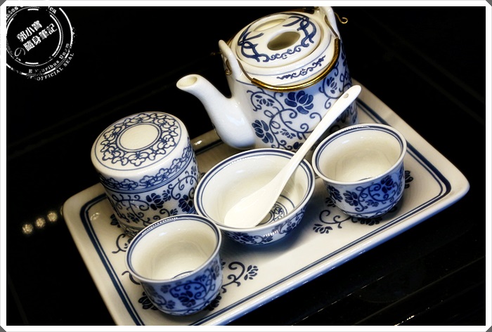 服務人員就送來了一大壺的禮賓茶,喝起來是清香的烏龍茶,磁具也非常的講究,