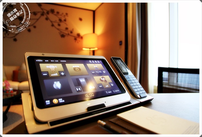 床頭櫃兩邊都各自有一台平板電腦與話機,是屬於半島酒店自己研發的。