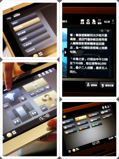 這一台平板電腦除了有12種語文以外,飯店的人員會依照客人訂房的資料,