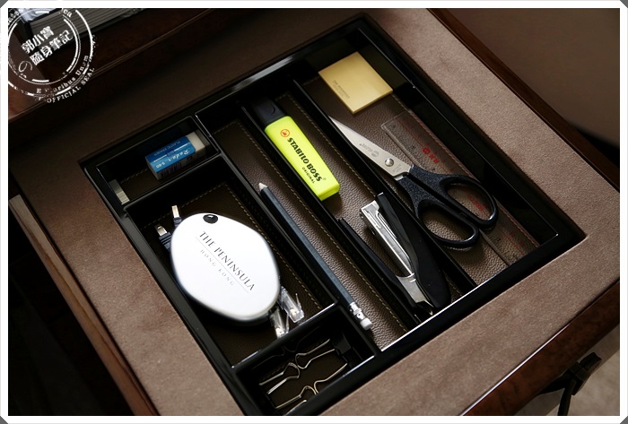 書桌的抽屜裡也備齊了相關的文具用品,這是我住那麼多飯店第一次看到。