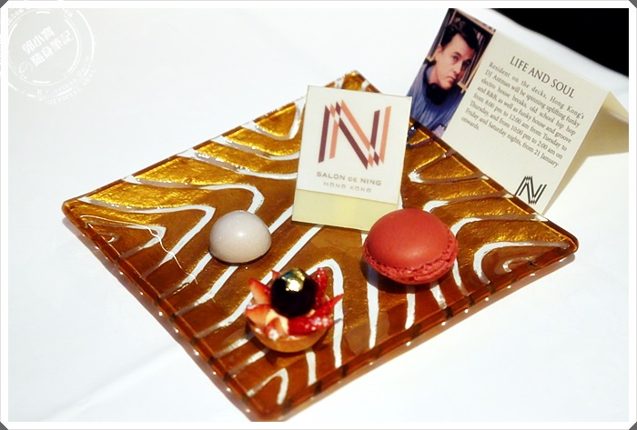 這馬卡龍不是客房服務送餐來的,是房間內每日一甜品,上面還有廚師的簡介@@