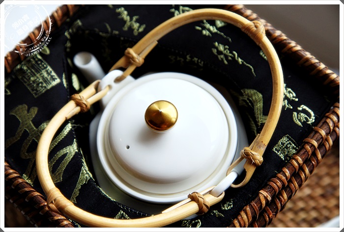 送來的時候是用一整個竹樓托盤送來的,非常有東方氣息,茶壺會另外用籠子裝起來,