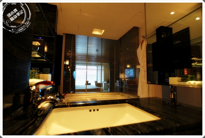 話說洗手台的旋轉鏡理面有大大的驚喜,理面有一面是有鑲崁著電視的,不管你式泡澡還是大號,