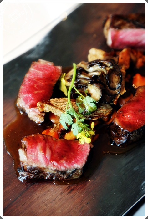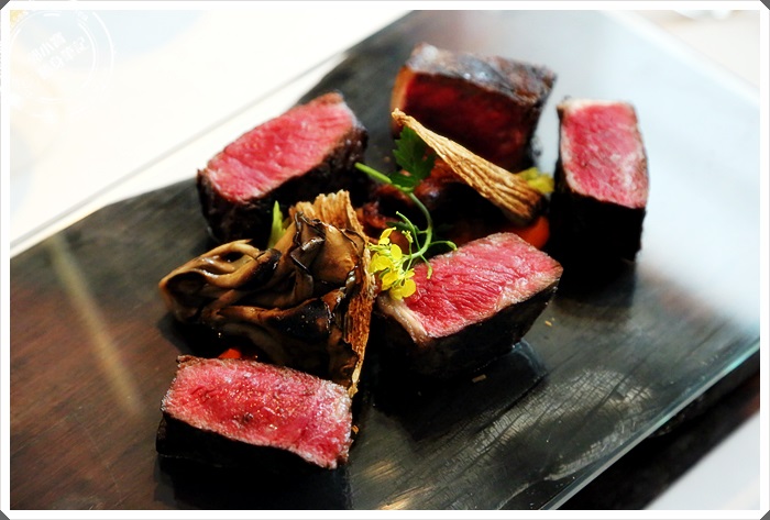 點綴個幾些野菇,切好的沙朗牛排每塊約一塊鳳梨酥大小。 |