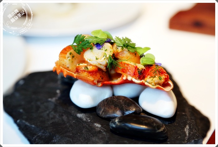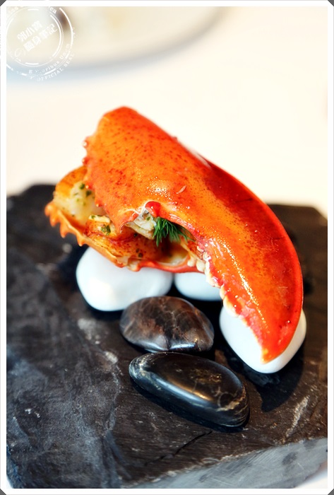螯盤的部分是將龍蝦大螯當作底盤,裡面放上切好的龍蝦肉,在蓋上蝦殼