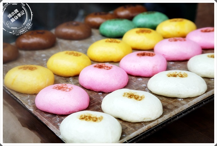 說到每家的溫泉饅頭真的是花樣百出,大大小小各種顏色通通都有。 |