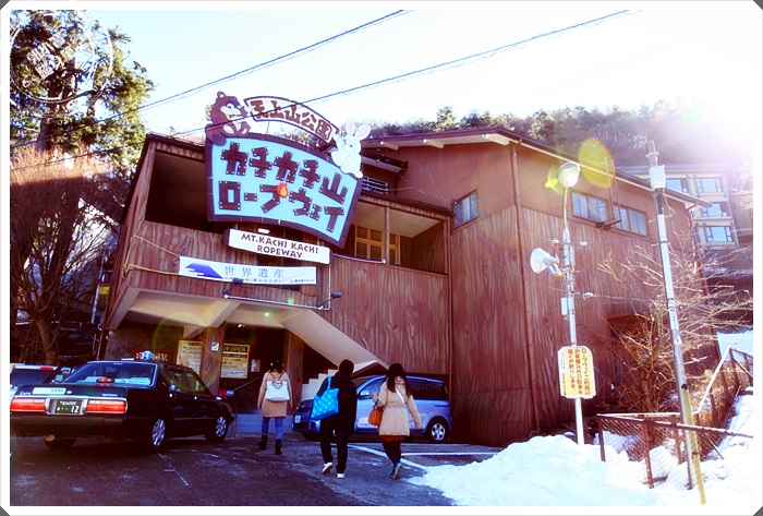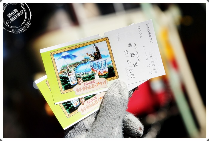 排隊買完票後,就可以去搭乘纜車了,可以買單程卷跟來回卷,很多人都是買單程卷下山在走樓梯下山,但是因為下雪的關係,怕樓梯太濕滑有危險,所以我們也買了來回卷,來回卷的票價是700日幣。 |