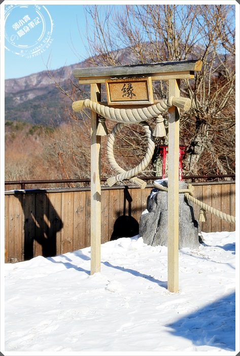 往神社裡面這個結緣鳥居中間的繩結丟,如果可以從中間穿過去就代表你的戀愛求緣會成功。 |