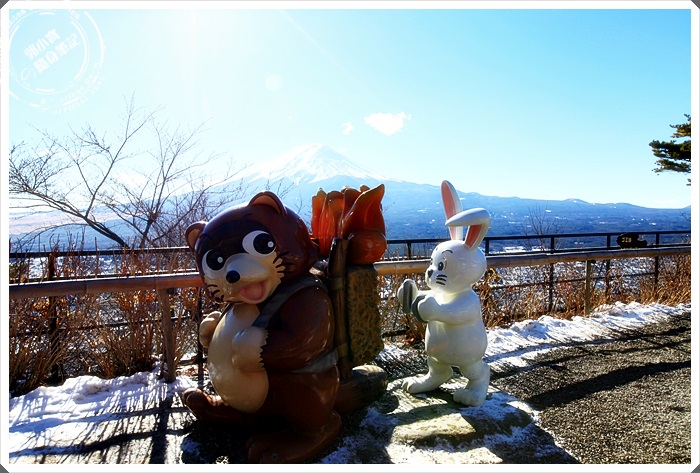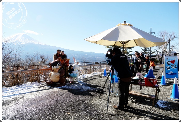 如果你是付費給當地的日本人拍照的話,記得他的棚旁邊還有很多道具,也可以拿富士山娃娃一起入鏡,相當的可愛,來這個定點拍照似乎變成了一定要做的功課,否則就好像白來了一樣。 |