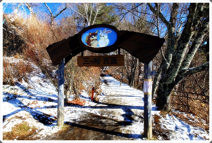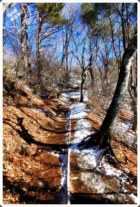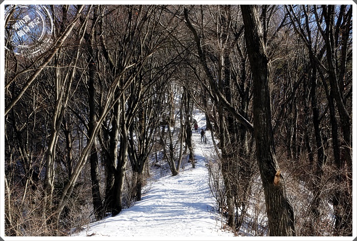 就像這樣的小路還滿危險的,如果有積雪就還好,最怕就是大太陽出來積雪被踩實然後結冰了,當天我們就是這樣用爬的爬上去,下山是坐著慢慢滑下來的。 |