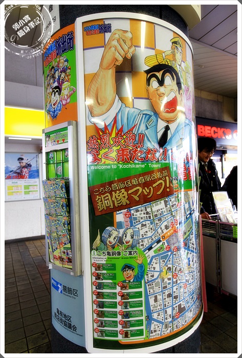 到達龜有站後就可以看到站內有這樣的一根廣告柱,柱子上就有放置烏龍派出所的銅像地圖,免費索取的。