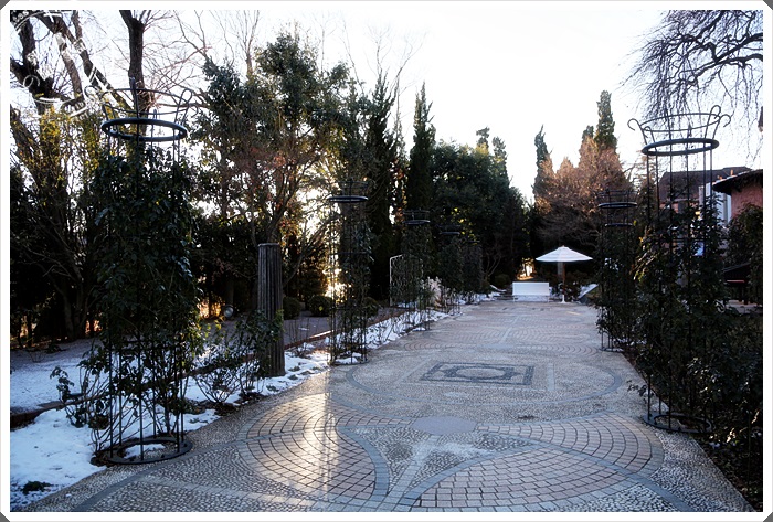 音樂森林的大門並不在馬路的這一邊,需要沿著庭園往旁邊走去,這天天氣還不錯,雖然也有積雪,但是陽光卻是露出臉來。 |