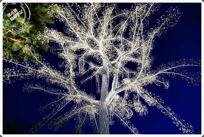 一旁的枯樹裝置的算是一顆冰樹,夜晚看起來格外的浪漫與華麗。 |