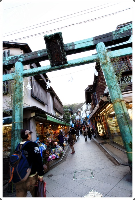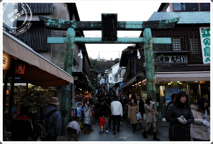 商店街的尾端就可以看到江島神社的主鳥居了,從這邊開始就是往江島神社的路,幾乎每個到江之島的朋友在怎樣也會在這邊拍一張照,是相當熱門的神社。