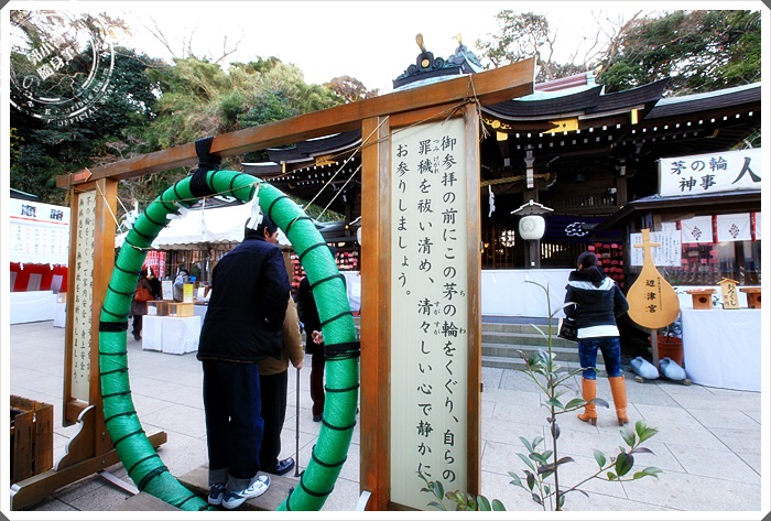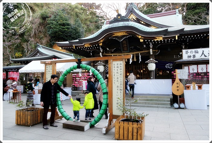 來江島神社膜拜的民眾相當的多,學生的比例也相當的高,每個人都要經過前方的綠環排隊到賽錢箱前乞禱,綠環的由來老實說我也不知道,但是人潮確實是絡繹不絕。 |