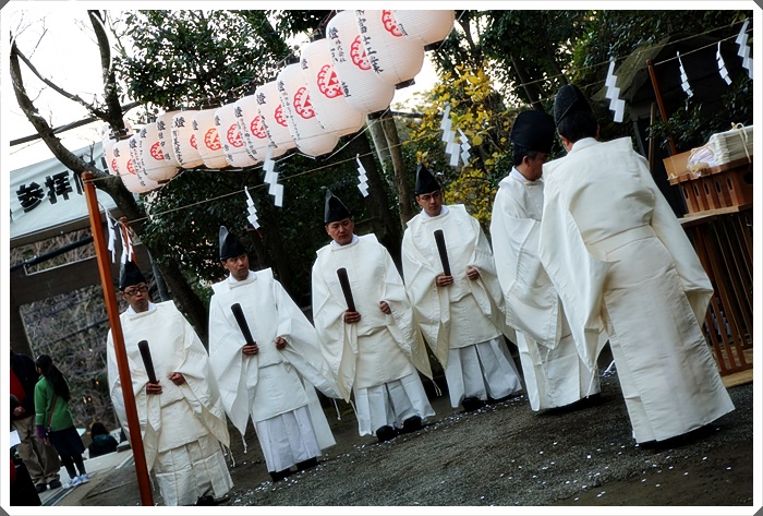 後來才知道原來今天有神官的祭祀活動,中間一度大塞車,人潮全部都卡在這邊進退不得。 |