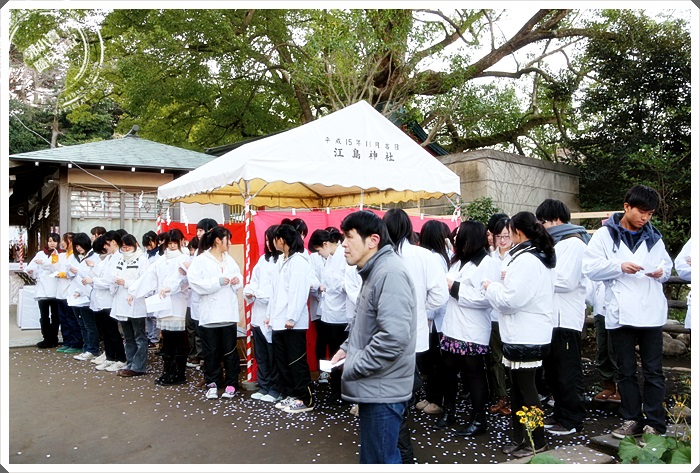 第二層就是主神社,辯才天最主要的主社在這邊,所以可以看到人潮相當的多,除了一般的民眾以外,學生也相當的多,神社旁邊也布置好了活動準備的野台,看樣子最近應該有很大的祭典的。
