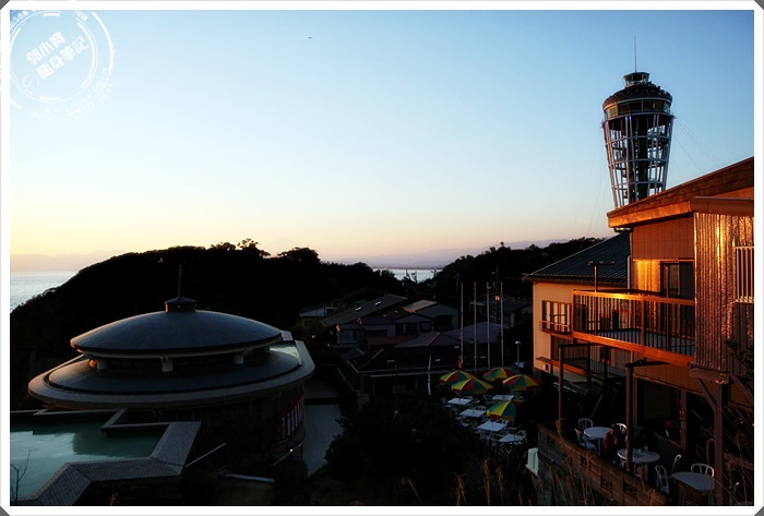 上到最頂層的時候就可以看到夕陽照射在海平面上了,看來我要趕快加緊腳步往江島燈飾的場地奔跑了。 |