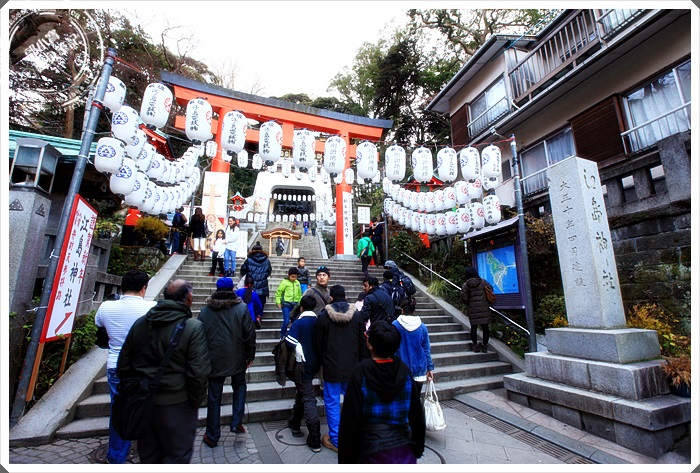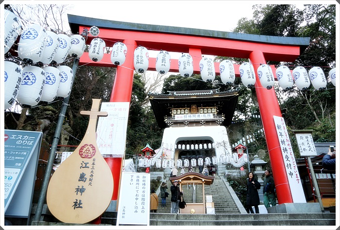 江島神社算是日本三大弁才天,是七福神之一,代表著口才、音樂及娛樂的女神,所以人氣相當的旺,幾乎過年時節都有很多人特地來參拜, |