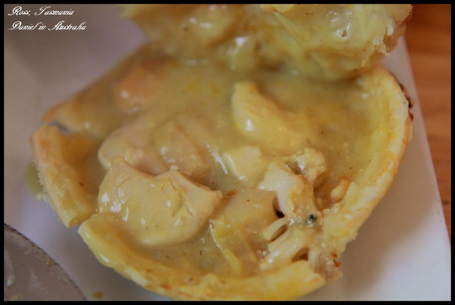 咖哩干貝派(A$7.9),本來想點其他的派來嚐嚐,但是後來眼睛一瞥到干貝派,就直覺得想要吃干貝就直接點了,只是沒想到這派的價位而已,雖然價位比其他派高,但一上桌其大小及裡面的份量也是最多的,感覺好像有種爆漿的趨勢,