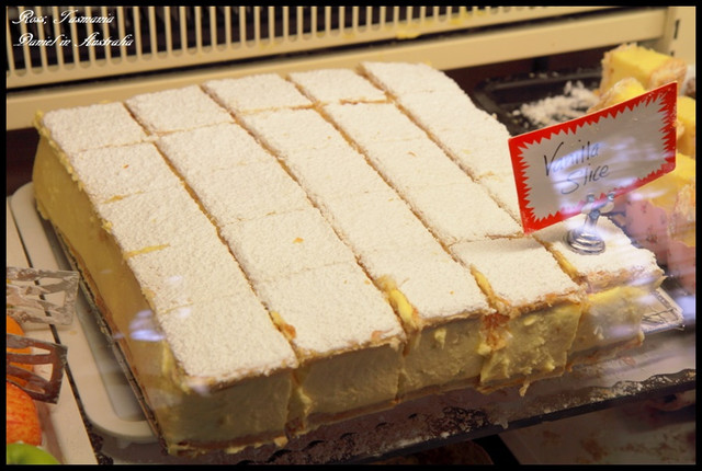 香草蛋糕(A$4.8),接著介紹店家的招牌蛋糕-香草蛋糕,雖然看起來這蛋糕在櫥窗時看起來其貌不揚,但是當時心想著應該會讓人有眼睛一亮的水準吧,