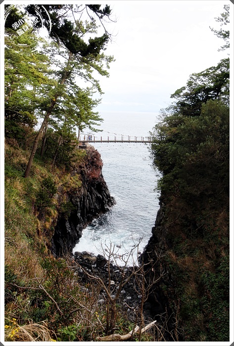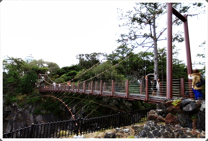 一旁就是相當驚險的門脇吊橋,這吊橋也是這附近的重點觀光景點,走起來搖晃得滿厲害的,凸出於海平面高達約20公尺的斷崖上的吊橋,真是驚險十足! |