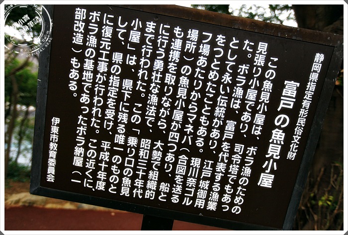 這一間靜岡縣僅存的魚見小屋相當的珍貴,是400年前用來觀察魚群洄游的一個地方,雖然現在已經沒有使用了,但是也是相當珍貴的歷史建築,這地方還滿偏僻的,所以建議還是最少兩人同行,到達魚見小屋後就差不多快到達下一個村落了。 |