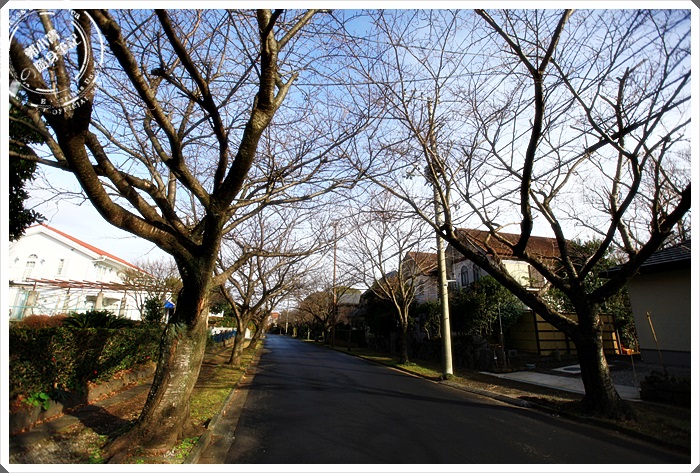 這一條路都是民房,大部分都是屬於歐式建築,道路兩旁都是種植了滿滿的櫻花樹,等櫻花盛開的時候就是很有名的櫻木並通,即使在冬天也是別有一番風情,我們第一個目標景點就是門協吊橋,從車站走到那邊約步行15分鐘左右。 |