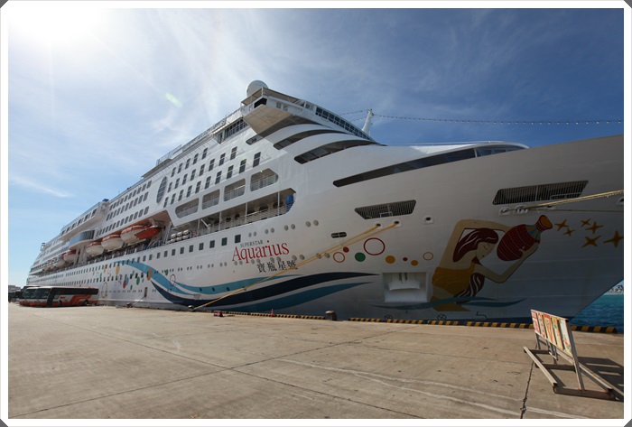 寶瓶星號總排水量約為51,309噸,算是中大型的郵輪了,整艘船的長度約為229.84公尺那麼的長,最多可以載客到1500多人,真的是超大艘的,站在船的旁邊真的可以感覺到她的氣勢,剛到基隆港的時候從旁邊看寶瓶星號就看到工作人員再清洗的它外殼,有些工作人員在忙著運送蔬果等食材上船,忙進忙出的,最讓我驚訝的是清洗船殼這一件事,連外表每次停船都要做那麼費工的清潔,更別說船內的設備保養了,這十幾年來只聽過遊覽車翻覆,飛機空難,火車脫軌等等的災難,看來還是郵輪最安全,除了十幾年前電影看了鐵達尼號以外XD