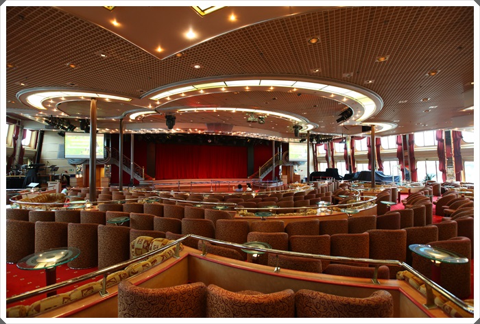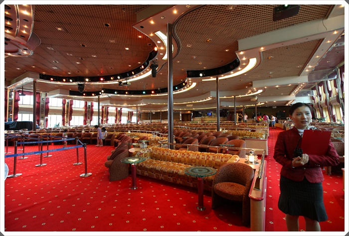 這地方雖然叫做星辰酒廊,但是它算是整艘寶瓶星號最大的室內娛樂空間了,幾乎每天晚上最重要的表演都是在這邊,座位數相當的多,如果沒有管家的話,9點開始的表演可能8點就要來搶位子了。
