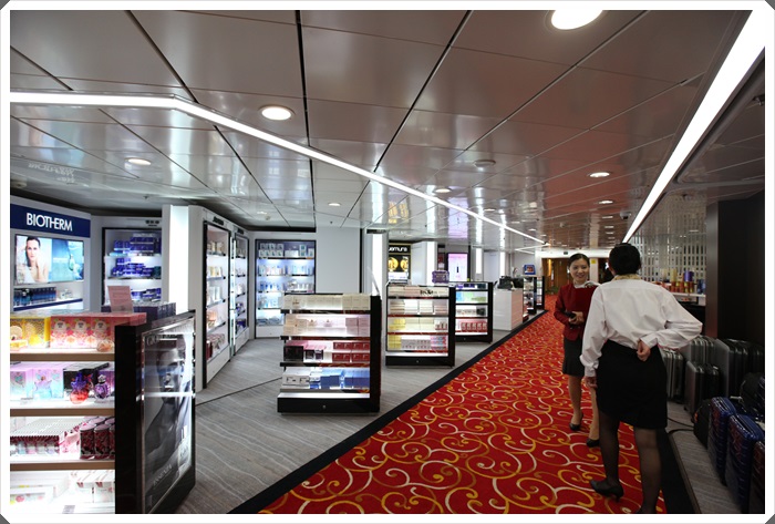 9樓還有一個最重要的地方,就是中免免稅商店,記得出發後兩小時就會開放了,記得一定要先去逛一下,裡面的東西真的都是超便宜的,去到石垣或者沖繩想買半手禮,千萬先看一下中免有沒有,因為價格差很多,寶瓶星號上面的免稅品很多都是販售這兩個地方的半手禮跟酒品,直接在船上購買就可以了,還有香水跟保養品,一點都不會輸給機場的免稅品店,非常的好逛,而且記得一上船就去7樓大廳辦一張會員卡,麗星郵輪辦會員卡是不用錢的,在免稅品店消費會員卡還有打折,加上又可以累積點數超划算的啦! |