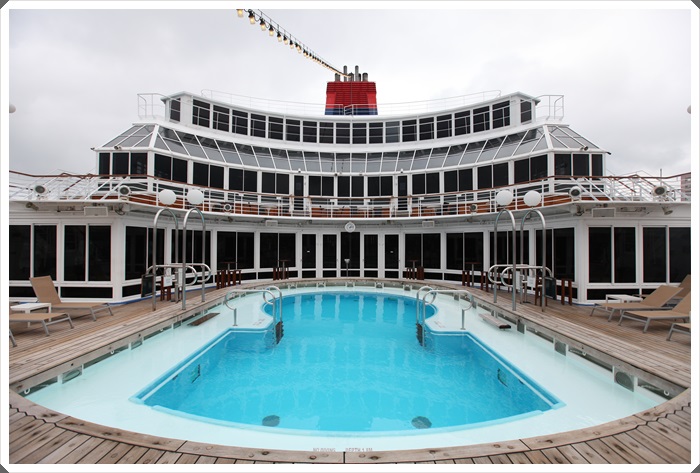 同樣9樓船尾是游泳池,下午時分來這邊游泳非常的愜意,可以觀賞到黃昏的海景,親眼看看那金黃色的陽光灑滿整片海洋的美景,遊泳池超美的! 隨時都有有救生員在現場待命,船尾也是一個很多人逗留的地方,沒游泳的人也可以來這邊看一下比基尼妹XD