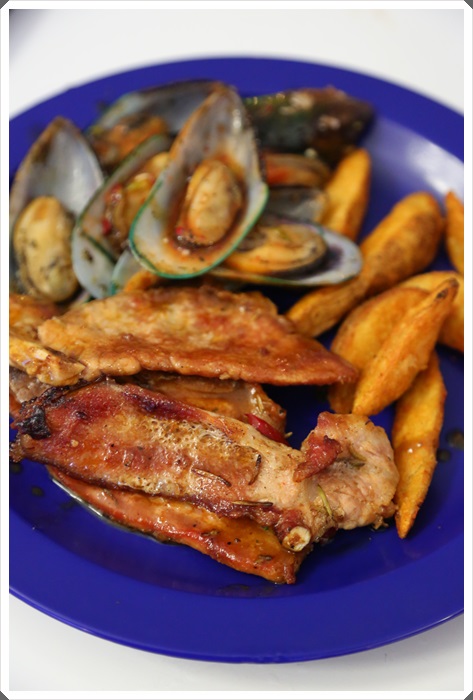 這家雖然稱為藍湖咖啡餐廳,但是大部分賣的都是比較精製的日本料理跟馬來西亞料理,也有提供生魚片,晚上有火鍋看起來好像很好吃,但是我們都沒吃到XD |