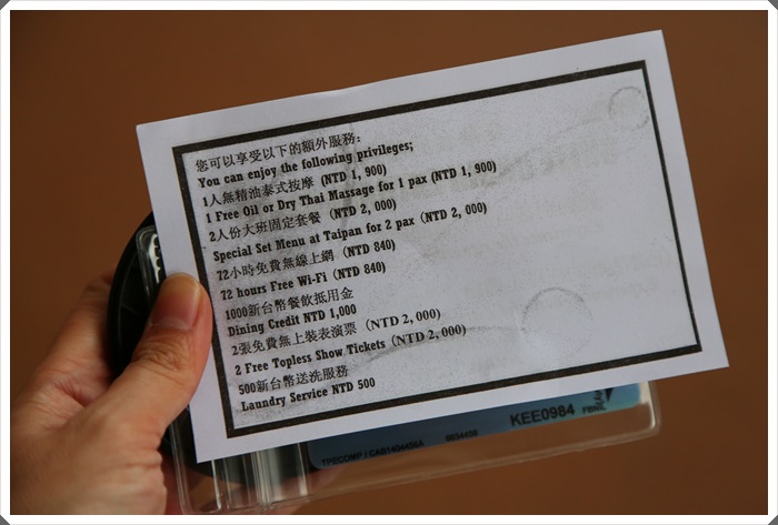 除了這四家餐廳以外,另外還有兩家餐廳是需要付費的,在船上你不用帶著現金,唯一要緊緊帶在身上的就是這張房卡,很多消費都是刷這張房卡的,可以跟工作人員或是旅行社要護照項鍊掛在身上比較不會忘記。 |