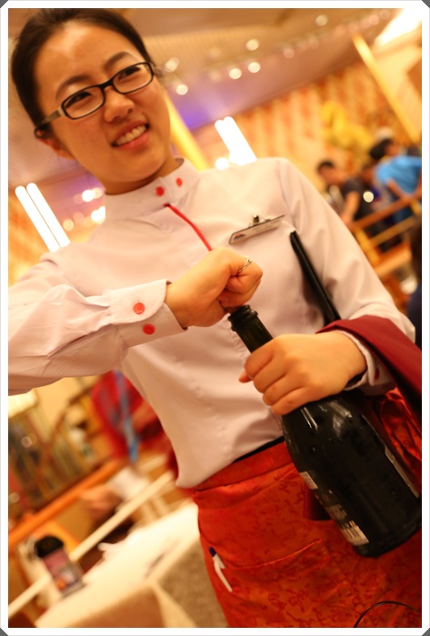 在麗星郵輪上不管是喝果汁調酒還是香檳任何消費都是刷房卡,每家餐廳不管是不是免費的都可以另外點果汁冰沙跟酒品,我必須說這位來自中國的小妹妹非常會推銷,三天晚上幾乎推銷了我們一堆香檳跟其他付費餐點!!!!! |