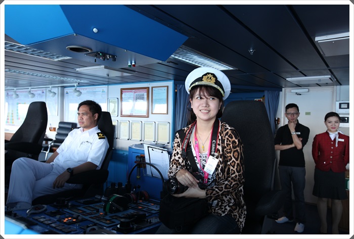 最後一天因為下午才回到基隆港,所以第四天一整天的活動很多,你可以前兩天就去報名處那邊問清楚有哪些活動可以參加,我們早上參觀了駕駛艙,好開心啊!!!! |